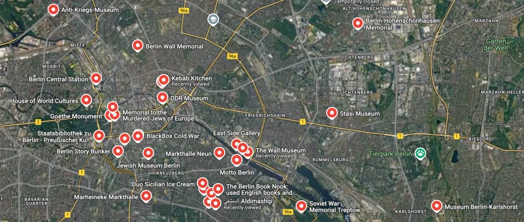 베를린 여행 하루 전에 세부 계획을 세웠다. 구글맵에 가고 싶은 곳을 전부 넣어두고, 위치가 비슷한 곳끼리 덩어리로 묶고, 각각의 장소를 검색해서 여는 날짜와 시간을 고려해 최종 계획을 짰다.