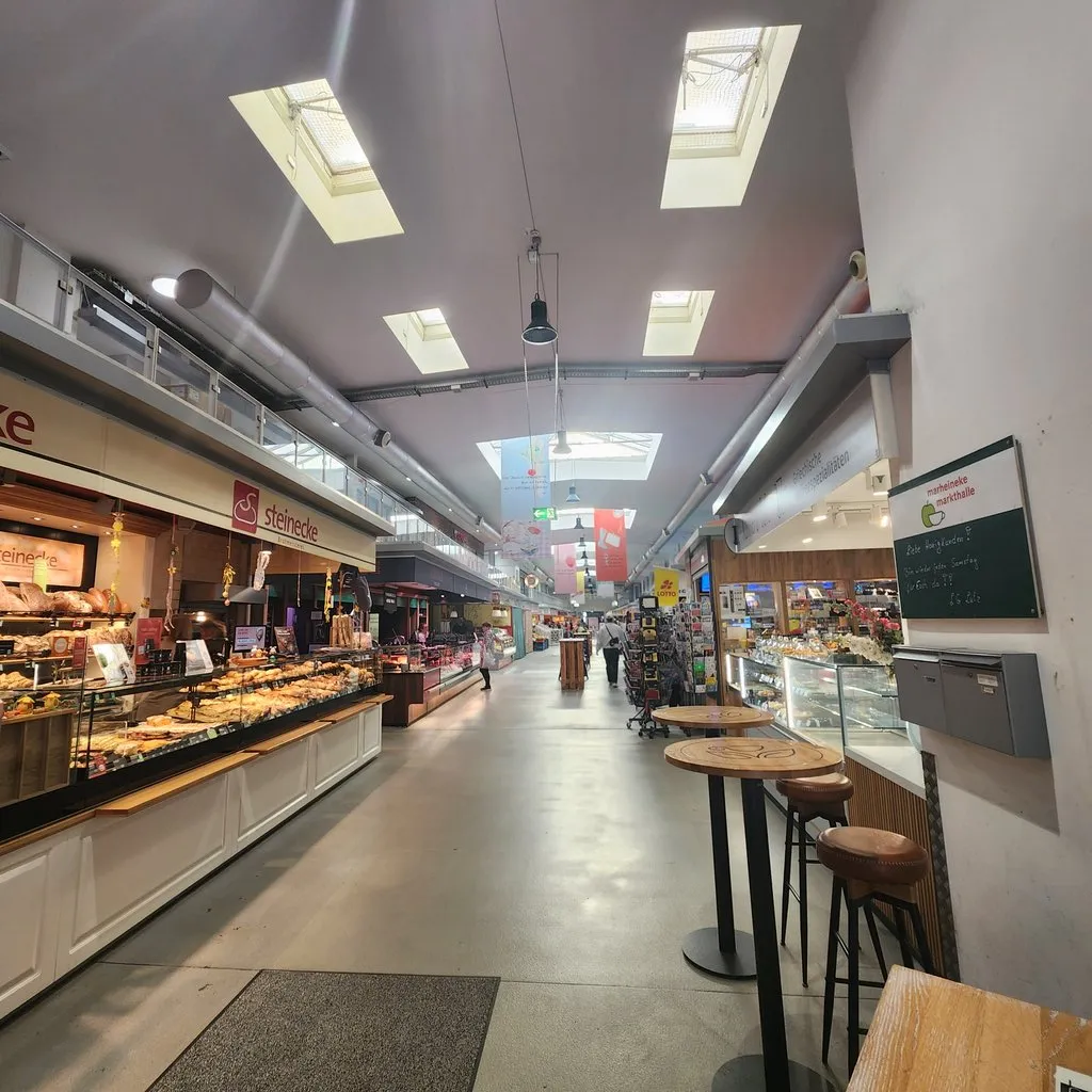 Marheineke Markthalle에는 빵, 생선, 치즈, 젤라또, 샌드위치, 과일, 채소 등 다양한 것을 팔고 있었고 음식점도 있었다. 여기서 베를린 교환학생 언니를 만나서 아침으로 파니니와 젤라또를 먹었다. 화장실은 입구에 있는 아주머니에게 1유로를 내야 하지만 내가 현금이 없다고 하니까 그냥 들어가게 해주셨다.
