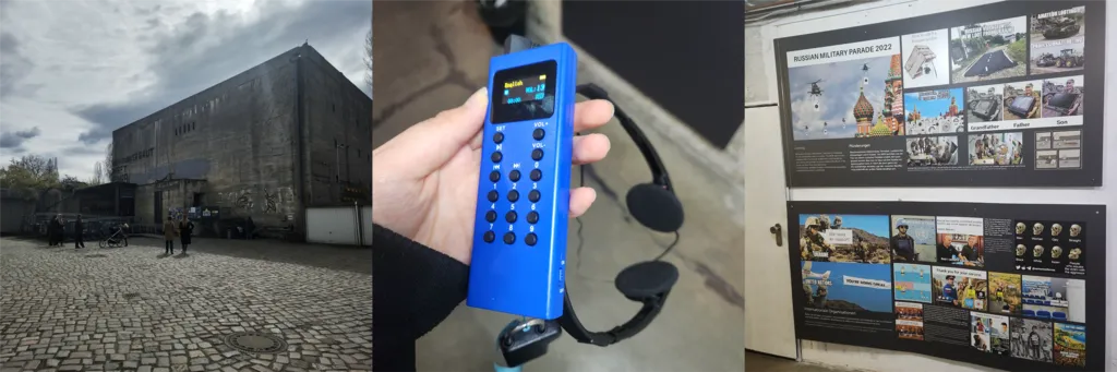 - 입장료는 오디오 가이드를 포함해 학생할인 9유로다. 저 무전기 같이 생긴 플레이어와 헤드폰을 빌려준다. 오디오 가이드를 필수로 포함시킨 것은 전시가 길고 정보량이 많이 때문에 오디오 가이드의 요약이 필요해서인 것 같다.