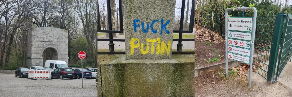 저 양각으로 조각된 돌들이 좌우로 여러개 쭉 나열되어 있는데 옆면에는 스탈린의 명언?들이 금색으로 쓰여있다. 왼쪽 돌들은 러시아어, 오른쪽 돌들은 독일어로 쓰여있어서 나는 읽을 수 없었지만 말이다. 반달리즘 사건도 있었고 다른 소련 선전 기념물과 마찬가지로 우크라이나 침공 이후 기념물 철거 논의가 있다고 한다.