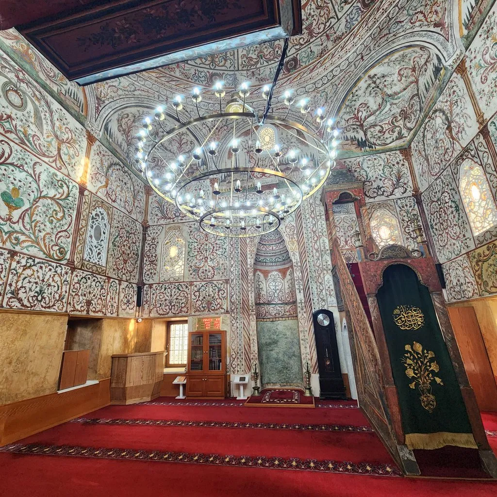 모스크 안에 들어가려면 여자는 머리와 팔다리 피부를 감춰야 한다. 나는 옷에 후드가 있어서 그걸 쓰면 된다고 한다. 내부는 화려하다. 이후에 내가 가게 될 더 큰 모스크가 지어지기 전에는 이 작은 모스크가 티라나에서 가장 큰 모스크였고, 그래서 이슬람 명절마다 기도하러 온 사람들로 미어터졌다고 한다.