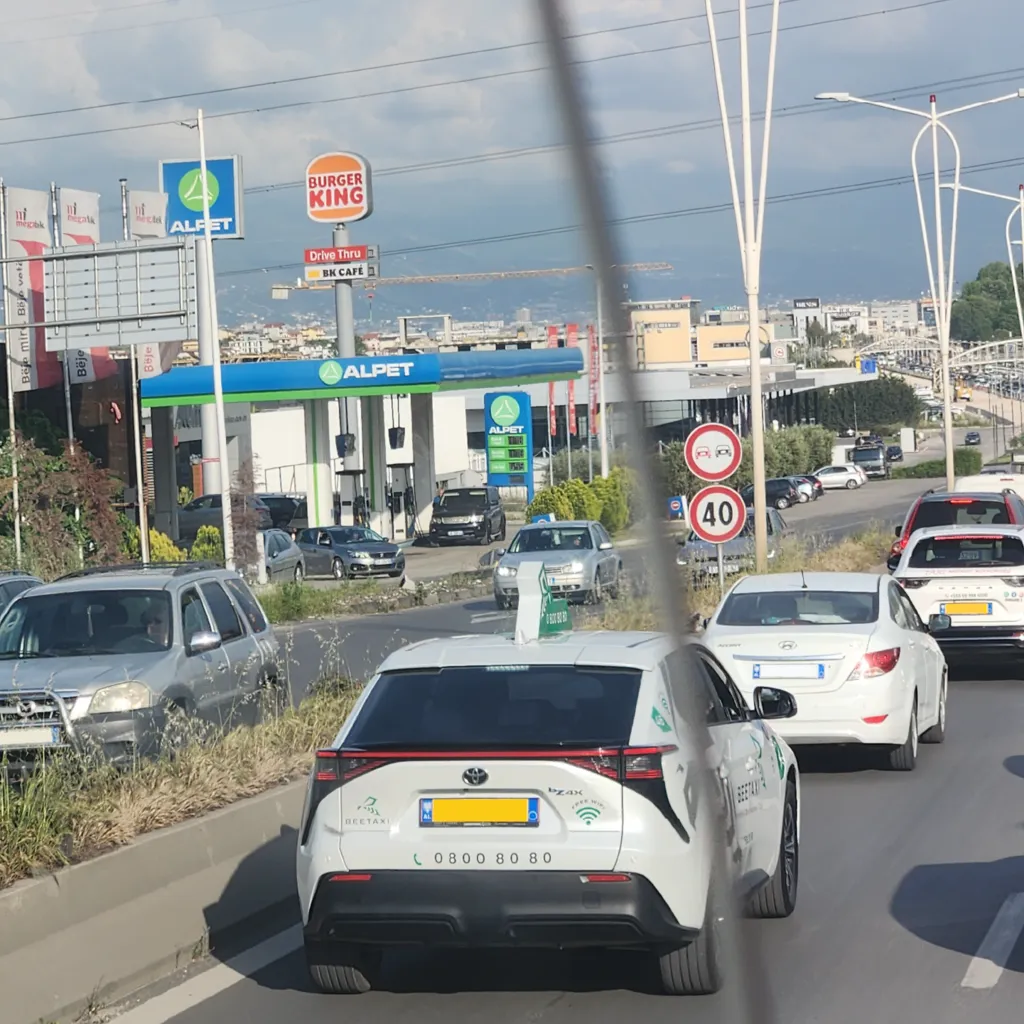 오후 5시 버스는 어느새 만차가 되어서 운전사 아저씨는 더 들어오려는 손님들을 돌려보내야 했다. 공항을 떠나는 길에도 버스를 놓친 사람들이 한을 담아 엄지손가락을 세워 보지만 버스 문은 열리지 않는다. 뽕짝 음악이 버스 안을 채우자 내가 탄 것이 알바니아의 버스인지 한국의 고속버스인지 분간할 수 없어진다. 톨게이트를 지나고 막힐 듯 막히지 않는 도로들을 지난다. 창 밖 풍경들이 계속해서 우리나라와 겹쳐진다. 저 익숙한 색 조합의 주유소와 버거킹 드라이브 스루 간판을 보라.