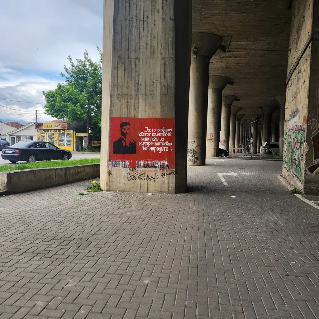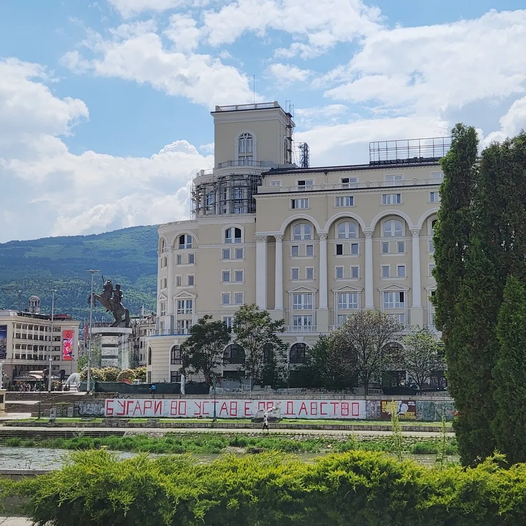 1941년 불가리아군의 마케도니아 점령을 현재 불가리아가 점령이 아닌 행정으로 완곡하게 처리하고 있다고 한다. 그래서 불가리아의 협정 종료를 주장하는 좌파 청년 조직이 저런 그래피티를 그렸다고 한다. 2