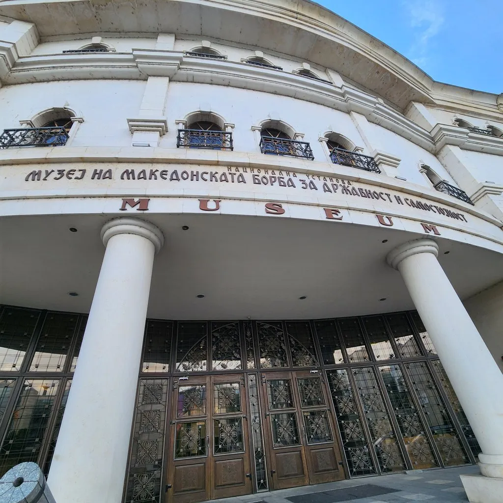 겉모습부터 웅장한 존재감을 뿜어 다리 맞은편에서도 눈에 띄는 Museum of the Macedonian Struggle for Independence의 건물.