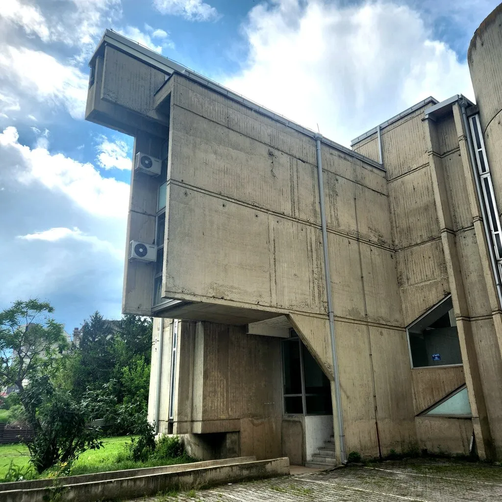 약간 발걸음을 재촉해 버스 터미널로 가는 길에서 우연히 구글 맵에 저장해 놓았던 브루탈리즘 양식의 대학교 건물을 본다. 키릴과 메토디우스 대학교는 운영 중인 대학교이다.