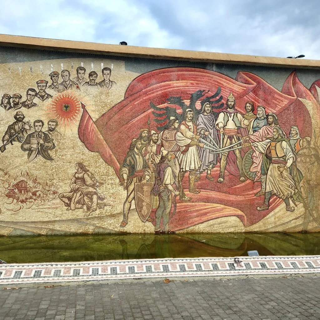 강가를 따라 신고전주의 풍의 ‘새로운 스코페’를 마지막으로 눈에 담은 뒤 올드 바자 쪽으로 간다. 스칸데르베그 광장은 티라나에도 있더니 스코페에도 있다. 알바니아 국기와 스칸데르베그 장군 관련 벽화가 그려져 있다.