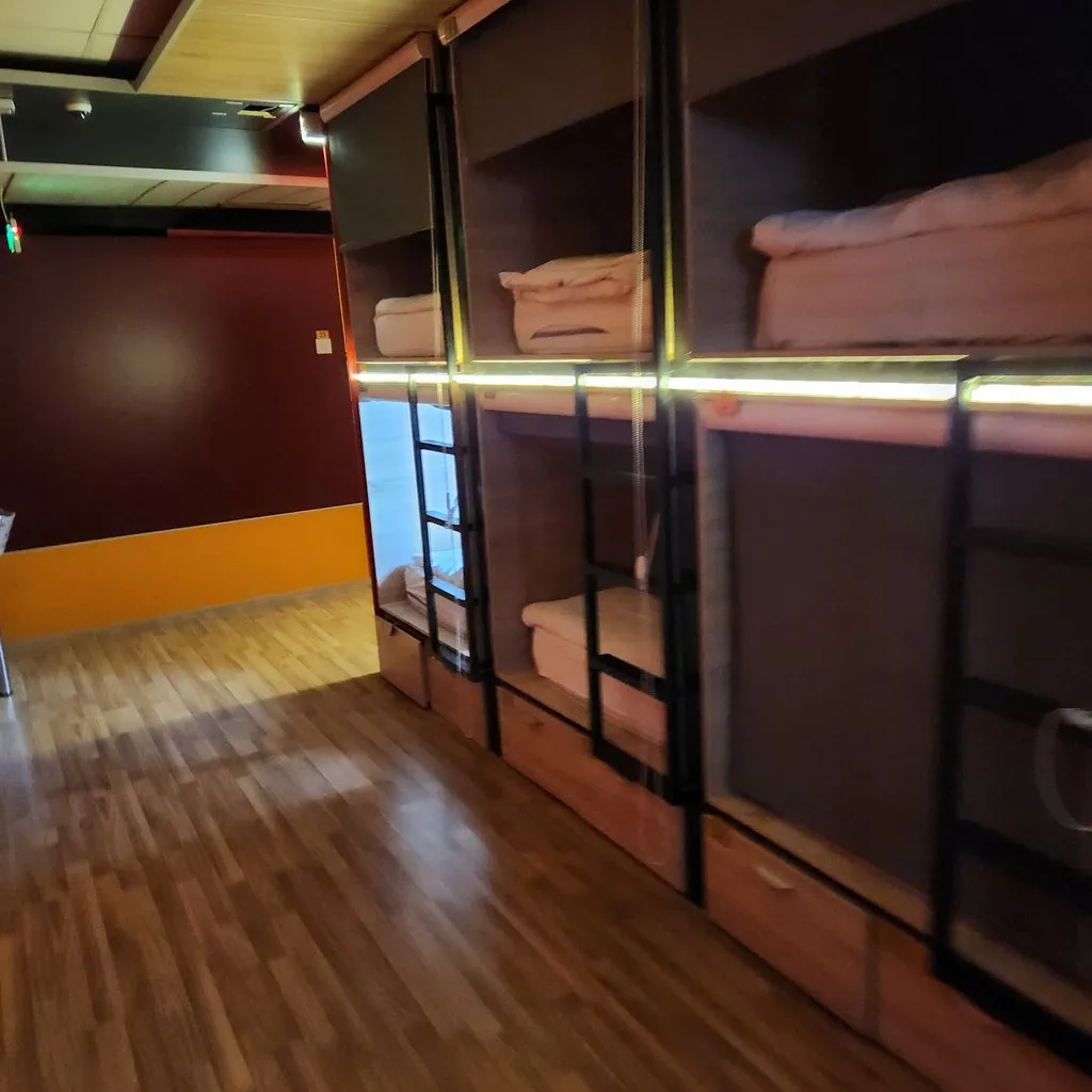Hostel Inbox에 들어갑니다. 1박에 9유로인 캡슐호텔입니다. 사실 사정으로 내가 아닌 언니 이름으로 예약되어 있어 카운터의 사람이 낮에 왔던 나를 알아보고 ‘당신은 이 숙소에 묵을 수 없습니다’라고 하면 어쩌나 시뮬레이션을 돌려서 뭐라고 말할지 다 생각해 놓습니다. 그러나 그런 일은 일어나지 않습니다. 카운터 쪽을 보지 않으려고 하며 호스텔에 들어갑니다. 언니에게서 넘겨받은 열쇠와 와이파이 비밀번호가 적힌 쪽지를 가지고, 지하 1층에 방이 있다는 말을 떠올리며 지하로 가는 계단을 찾습니다.