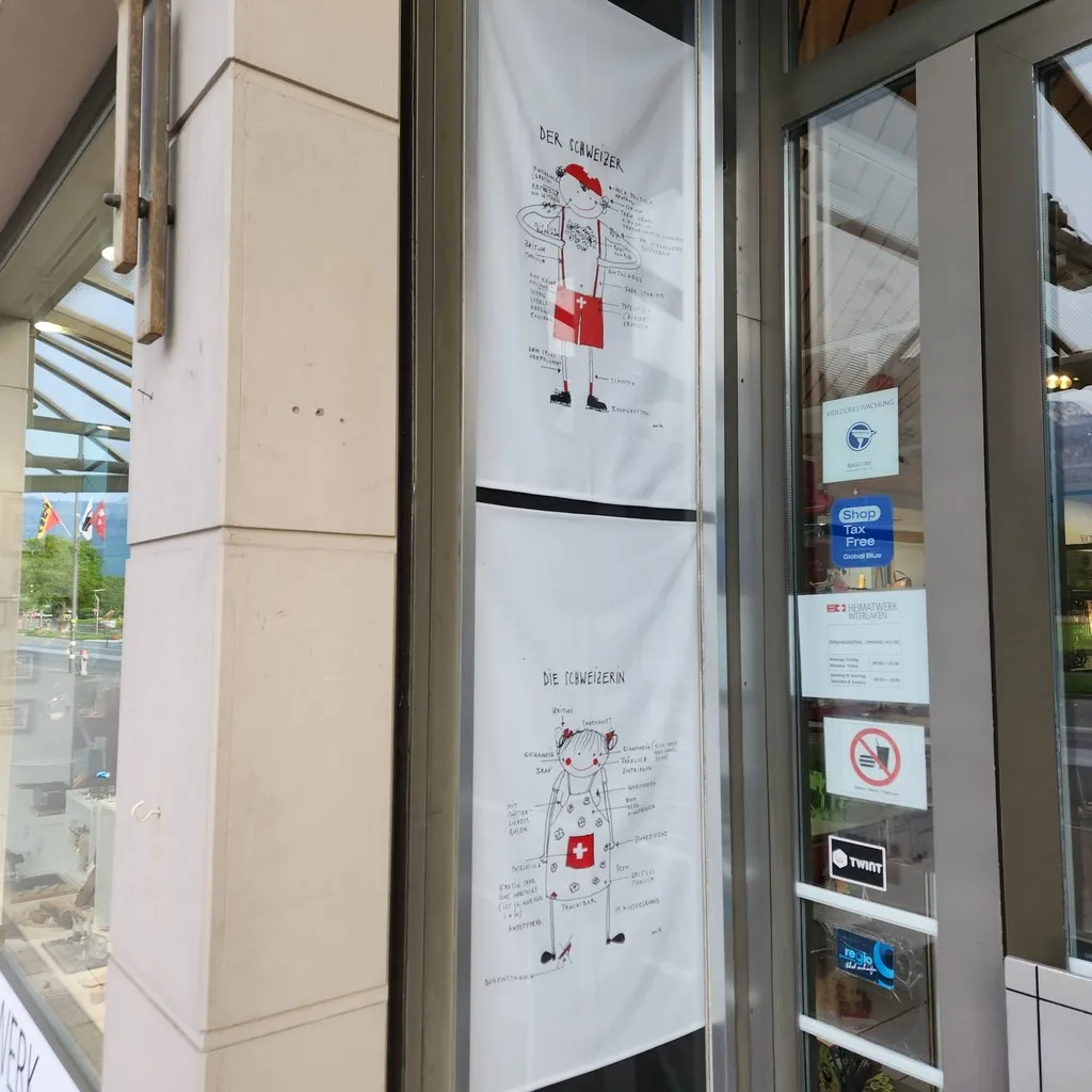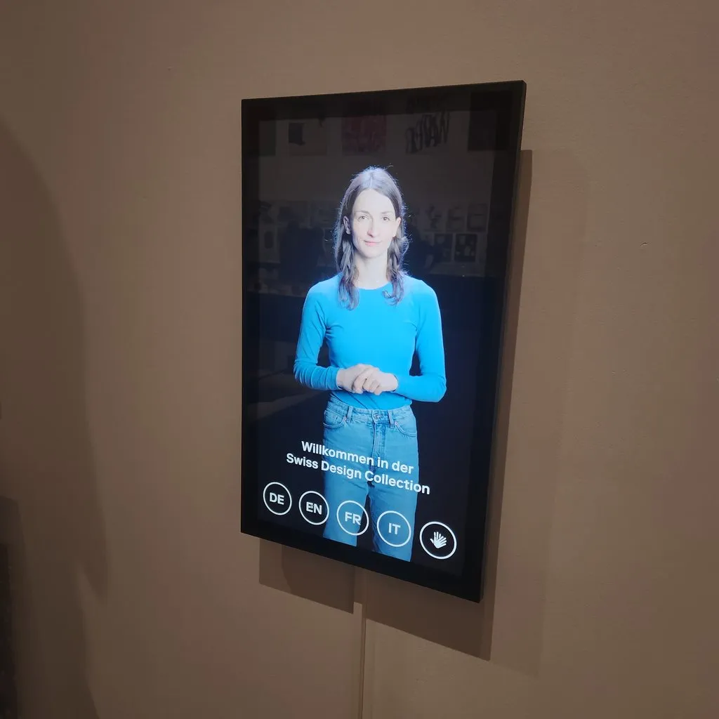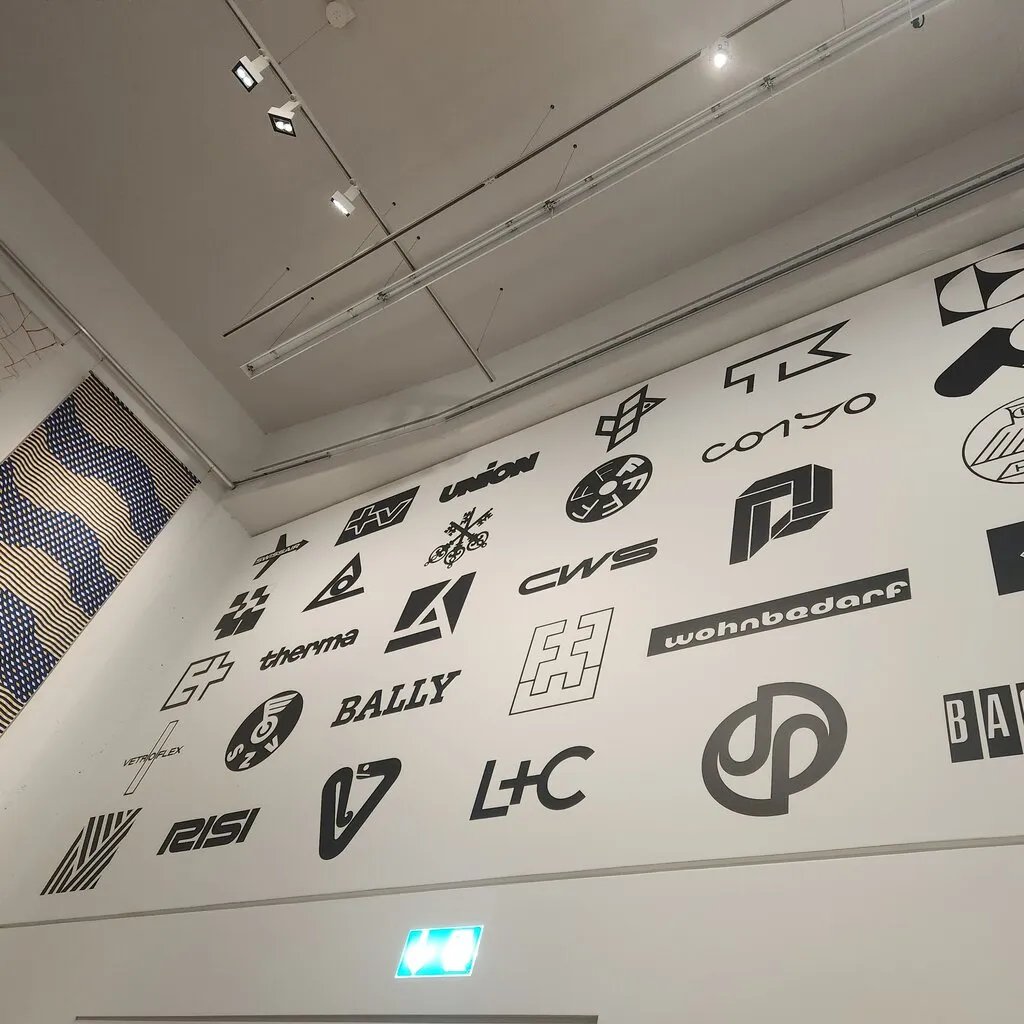 전시관에서 벽면을 올려다보면 스위스의 로고들과 포스터들이 보인다.