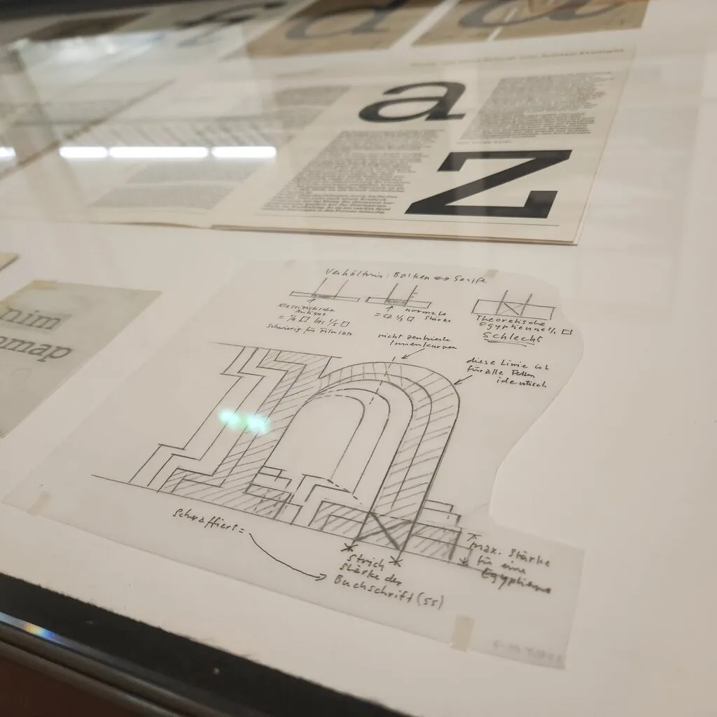 아드리안 프루티거의 서체 개발 과정들이 기록되어 있다.