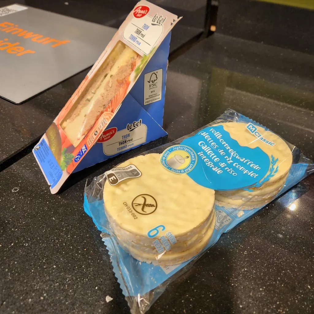 독일에서 가져온 브로콜리 치즈 컵파스타를 아침으로 먹었다. 호텔 체크아웃을 하고, Interlaken Ost 역에서 IC81 타고 취리히로 가는 동안 쿠키와 요거트를 더 먹었다.