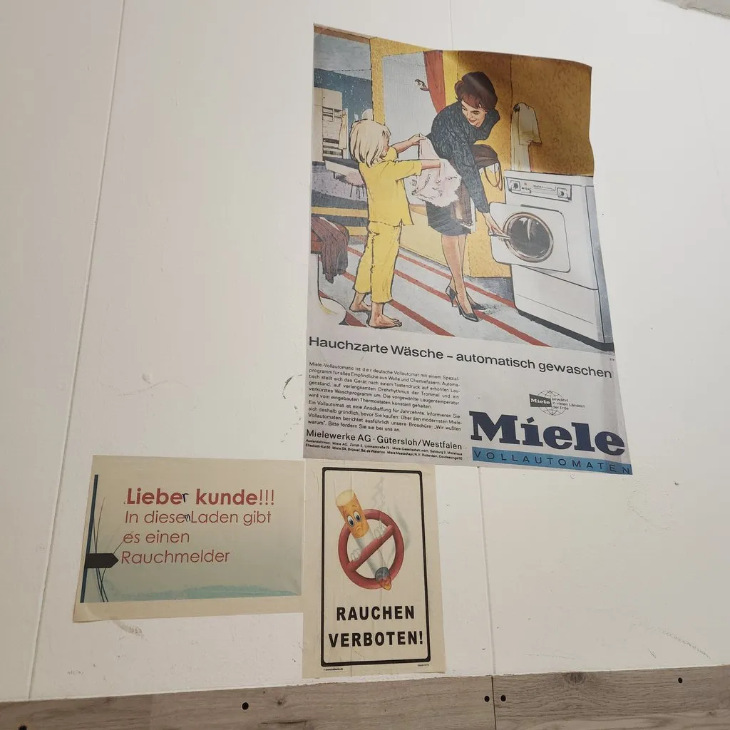 밀레 세탁기 빈티지 포스터들이 붙어있다.