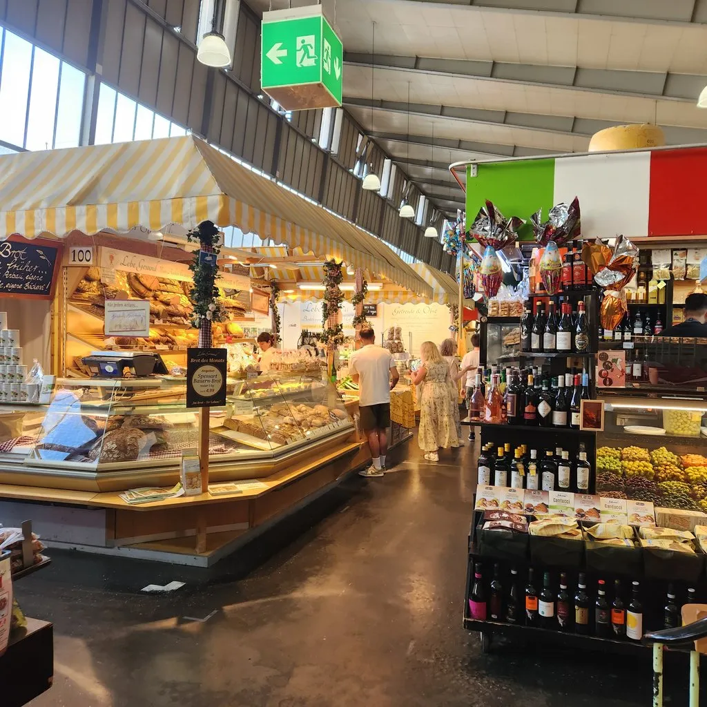 다른 마크트할레랑 비슷하게 각종 수입 과자, 과일, 향신료, 케익, 치즈와 소세지와 고기를 판다. 근데 베를린보다 더 각국의 색이 짙은 느낌이다. 위층과 지하에는 생선 가게가 있다.