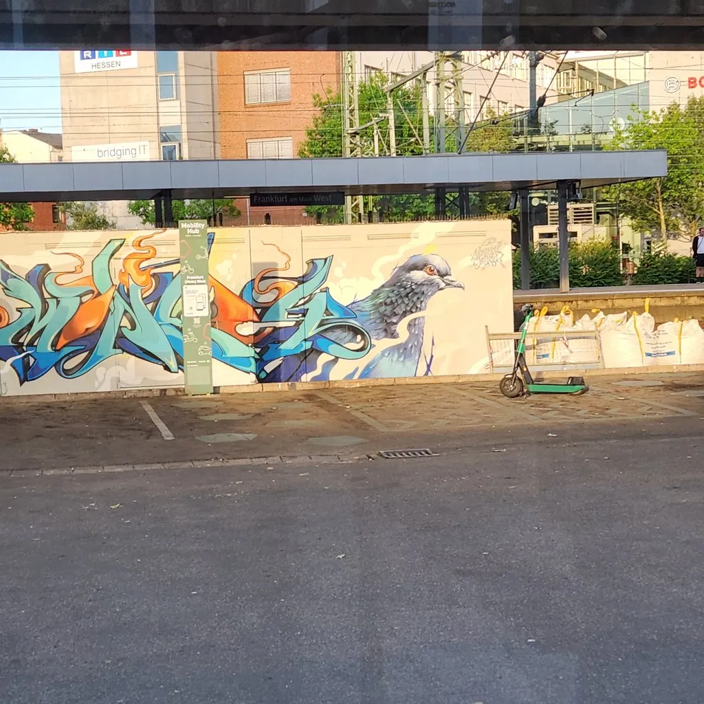 프랑크푸르트 웨스트 역에서 본 비둘기를 주인공으로 내세운 그래피티