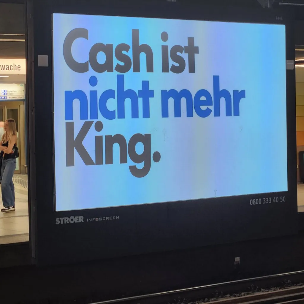 프랑크푸르트에서 몇 번 본 이 광고는 Cash is no more king, 그리고 또다른 거 한 개, 이 캐치프레이즈들 빼고는 아무런 부가정보가 없는 ‘치악산복숭아당도최고’ 류의 광고다. 메세지에는 나도 동의한다. 모든 가게가 카드를 받았으면 좋겠다.