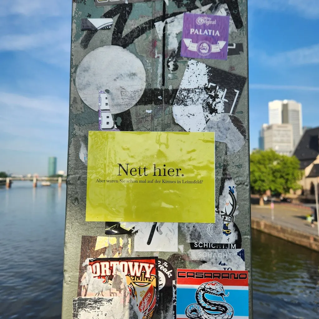 이 스티커는 독일 여기저기에 있어서 뭔가 했더니 광고라고 한다. ‘여기 좋지? 근데 너 라임펠드는 가봤니’ 이런 템플릿.