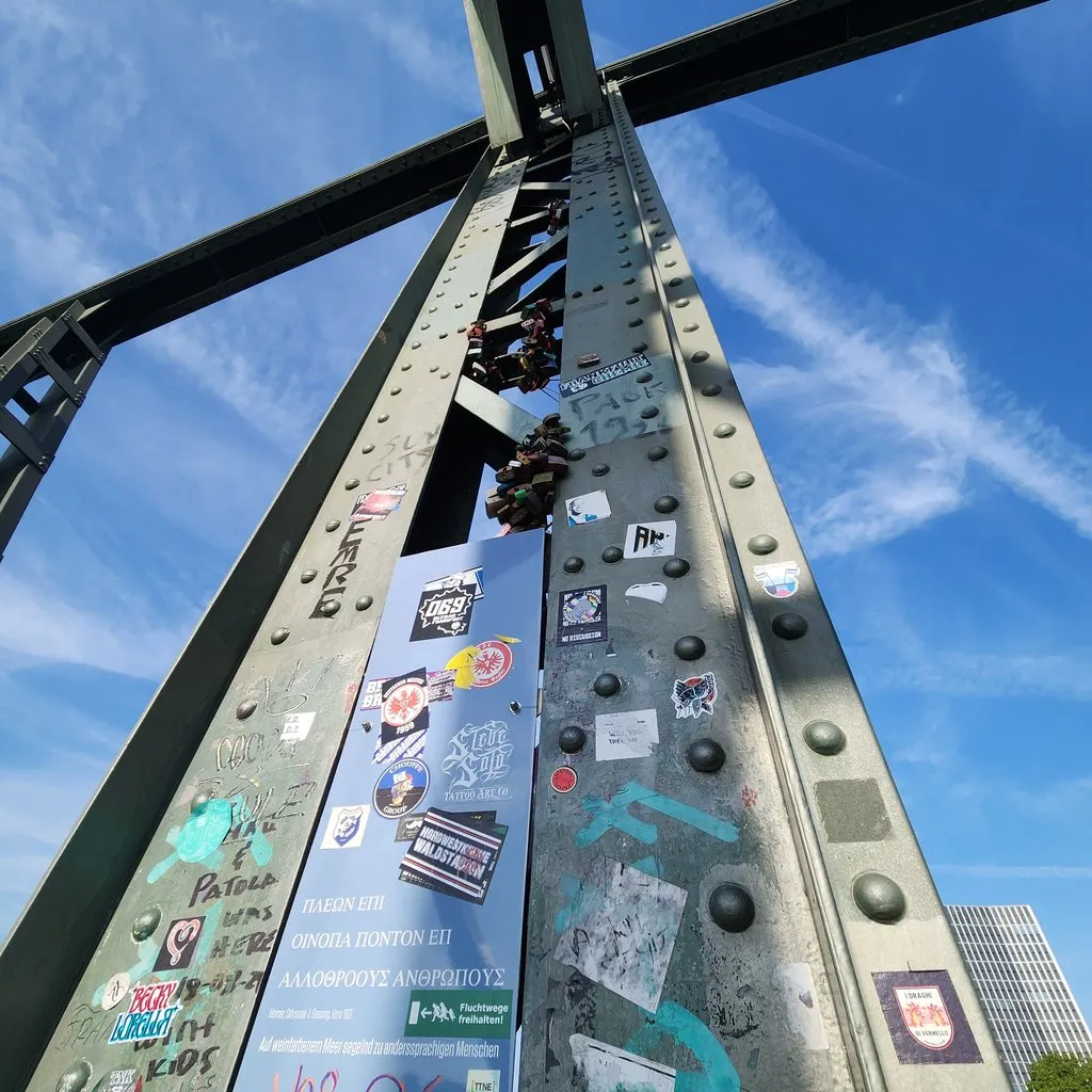마인강을 가로지르는 철교. 스티커와 자물쇠로 도배되어 있다.