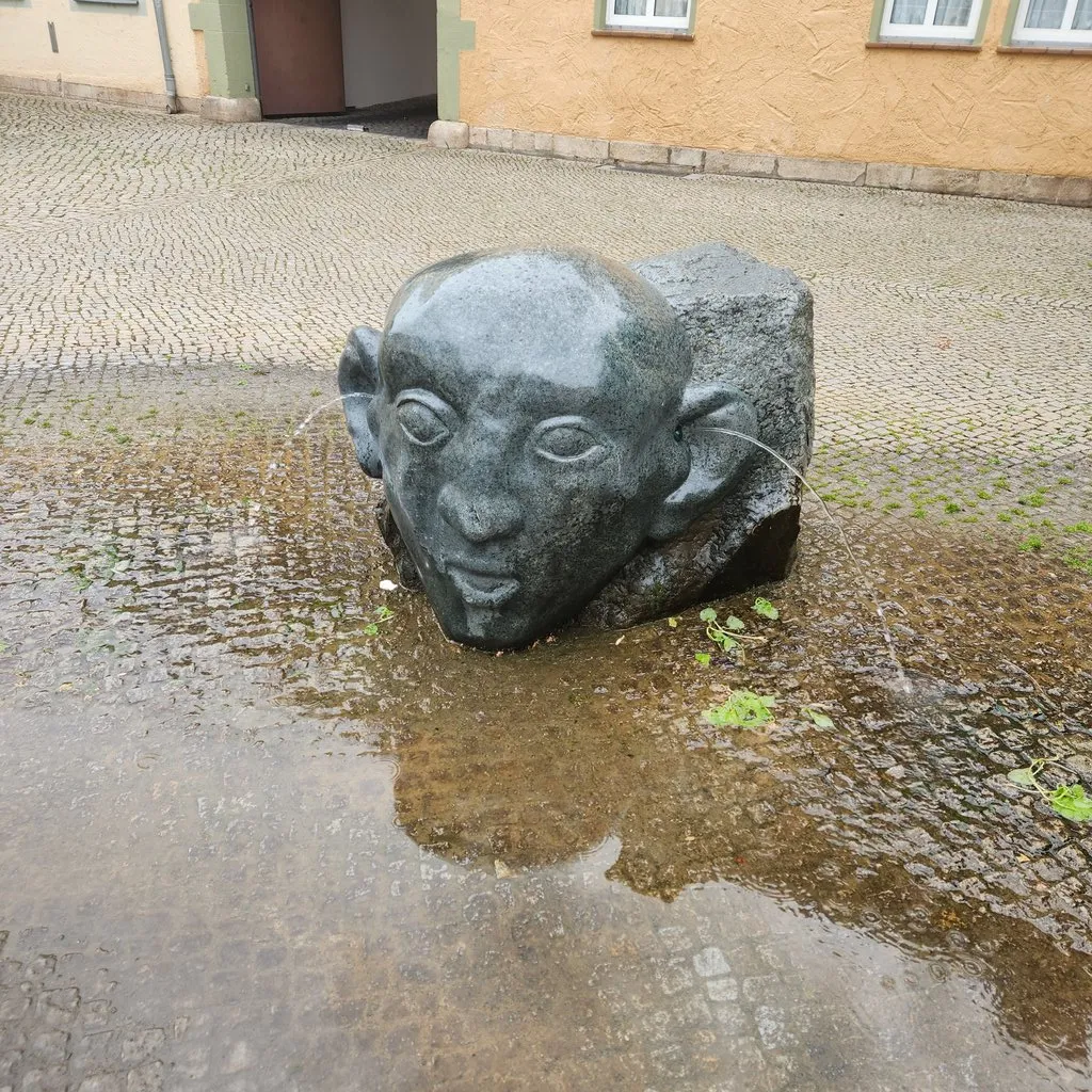 피자 한 판을 혼자 해치웠더니 맥주가 땡겼지만 어제도 먹었고 다음날 라이프치히에서 흑맥주먹어야해서 오늘은 쉬어가기로 하고 대신 물을 받으러 갔다. 식당 화장실도 있지만 뭔가 꺼려졌다. 아까 오는 길에 인상깊게 봤던 귀에서 물뿜는 대가리로 가서 페트병에 물을 한가득 채웠다.