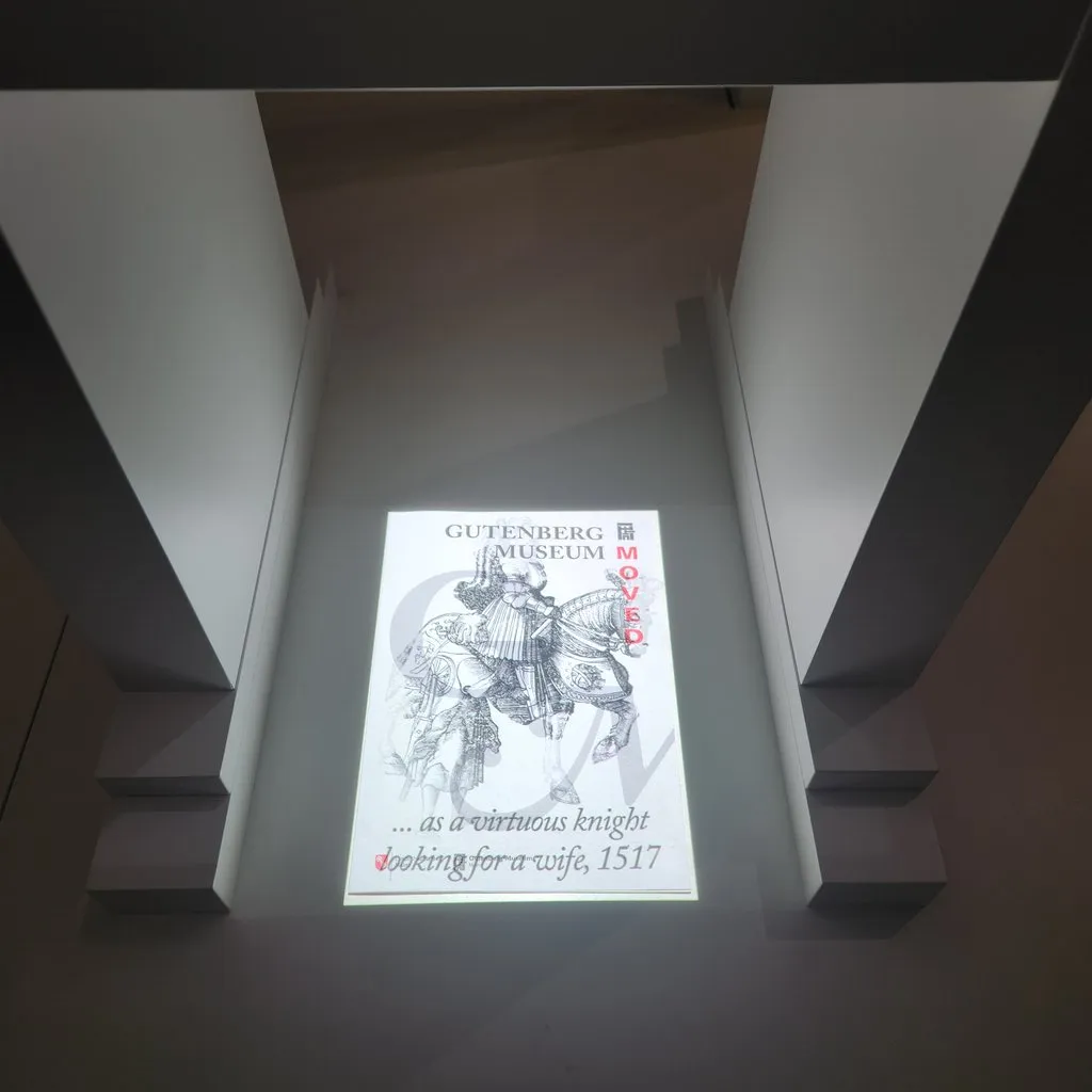 그리고 이런 구텐베르크 프린터같은 모형 아래에 입장할때 받은 카드를 위치시키면 영상을 쏘아서 보여줌. 좀 유치했다.
