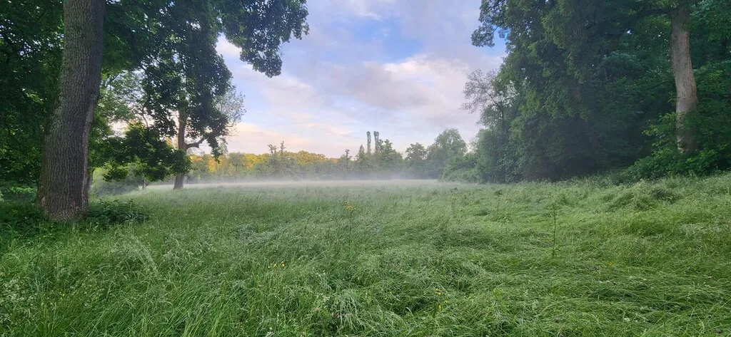 계속 일름강을 따라서 나 있는 길을 걷는데 지평선에는 안개가, 풀에는 이슬이 맺혀 있었다. 이건 4D로 봐야지 사진 따위에는 담기지 않는다.