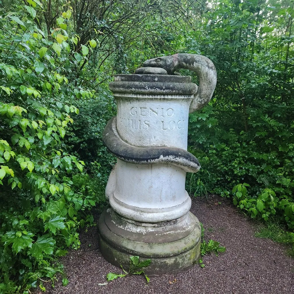 Schlangenstein. 공원에 있는 여러가지 조각 중 하나. 여기를 찍고 다시 돌아오기 시작했다. 넓은 중심 산책로를 벗어나 숲길 같은 데를 걷기도 했다.