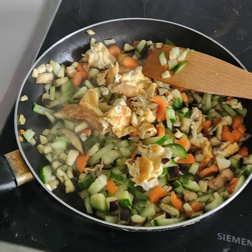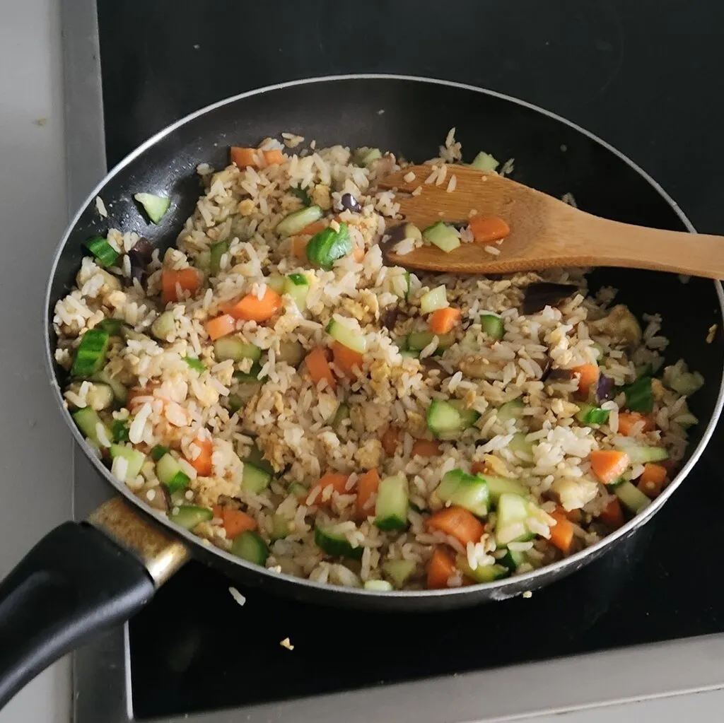 기세를 몰아 오이, 당근, 가지를 사와서 위와 똑같은 방법으로 볶음밥을 했다.