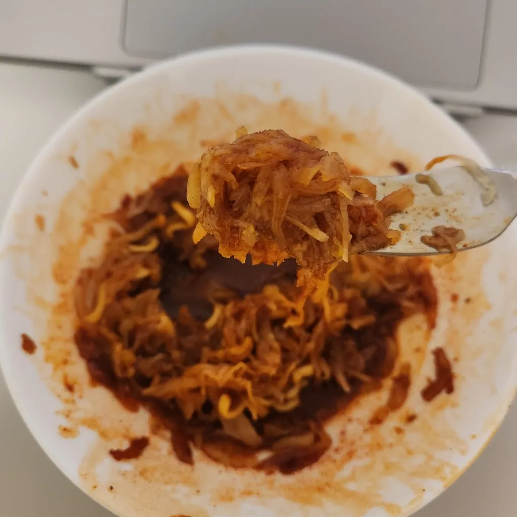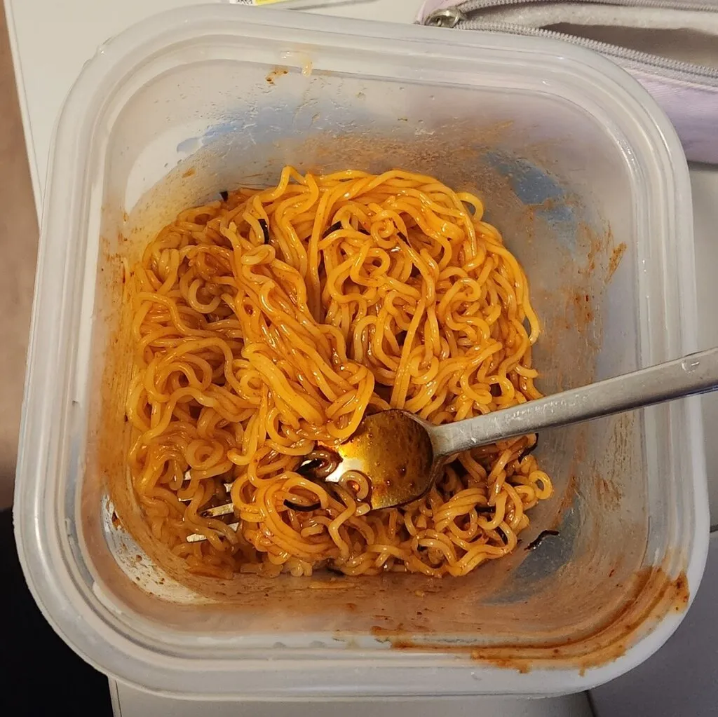 김치맛 불닭볶음면을 받았다. 먹고 남은 양념을 버리기가 아까워 저번에 뭔지도 모르고 사봤던 사우어크라우트를 말아 보았다. 놀랍게도 묵은 김치 맛이 났다!