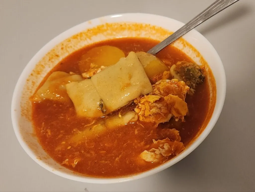 같은 플랫에 사는 중국인 친구가 하이디라오 소스를 줬다. 그래서 이번에는 코인육수 대신 그 소스를 넣고 끓였다. 차이점은 그게 다다. 그 친구에게는 나중에 보답으로 코인육수를 줬다. 토마토 수프 또는 보르쉬 맛이 났다.