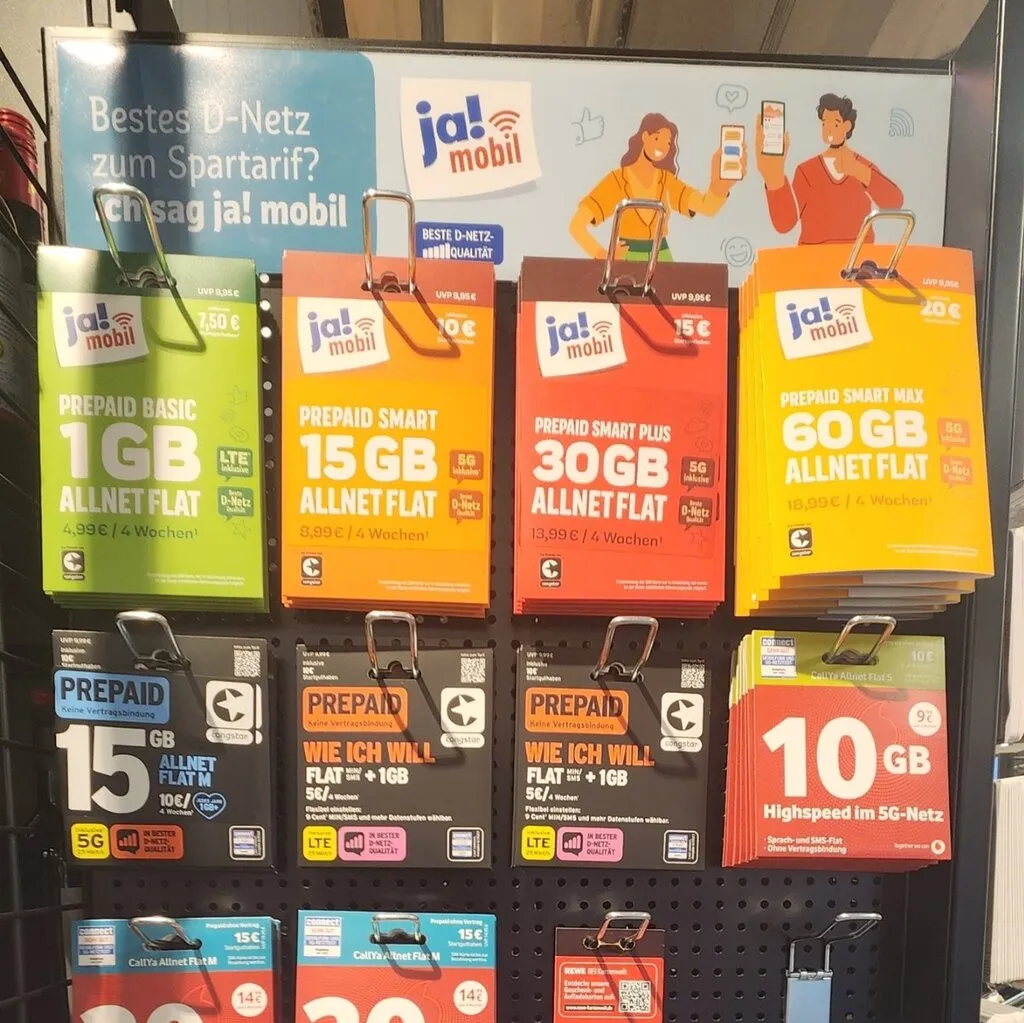 반대편 터미널 쪽 REWE에 가서 덜컥 유심 사고 (가격이 싸지도 않은데 겨우 1GB짜리를 사서 ja!mobil 플랜 바꾸기 곧 요금제를 바꿔야 했다.)