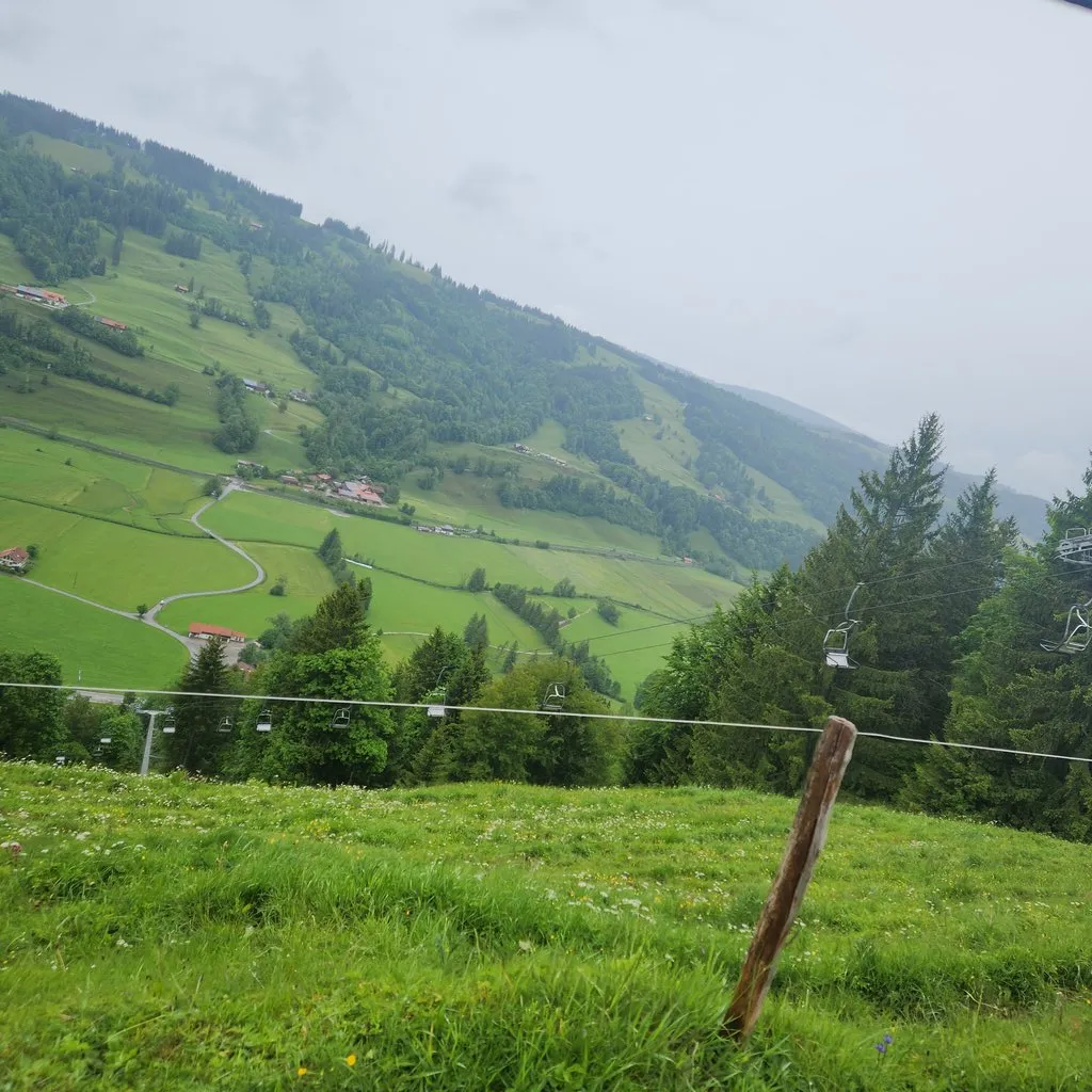 음식값이 비싸니 경치와 공기라도 즐기며 오래 앉아있기로 했다. 부어스트가 다 식어 딱딱해지고 감자튀김이 퍽퍽해지도록 가져온 책을 읽으면서 최대한 천천히 음식을 깨작거렸다. 손님은 두 그룹밖에 더 오지 않았다. 코스터도 전에 왔을 때는 줄이 있었는데(우리 학교에서 단체로 온 사람들 제외해도) 줄이 없었다. 그래도 타고 내려가는 사람은 좀 있었다. 어느새 비가 그쳐서 리프트를 타고 올라오는 사람이 조금씩 보였다. 12시에 그릇을 치우고 자리에서 일어나 하산을 시작했다. 올라온 것과 똑같은 길이다.