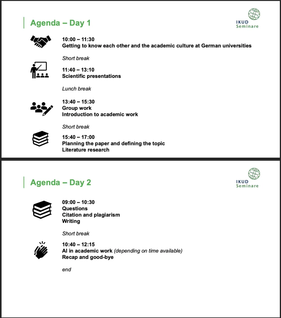 이건 오티 기간은 지나서 한 것이다. 학교메일로 왔길래 신청해서 참여해봤다. 독일 학교에서의 발표, 논문쓰기 등에 대한 세미나와 각종 활동으로 구성된다.